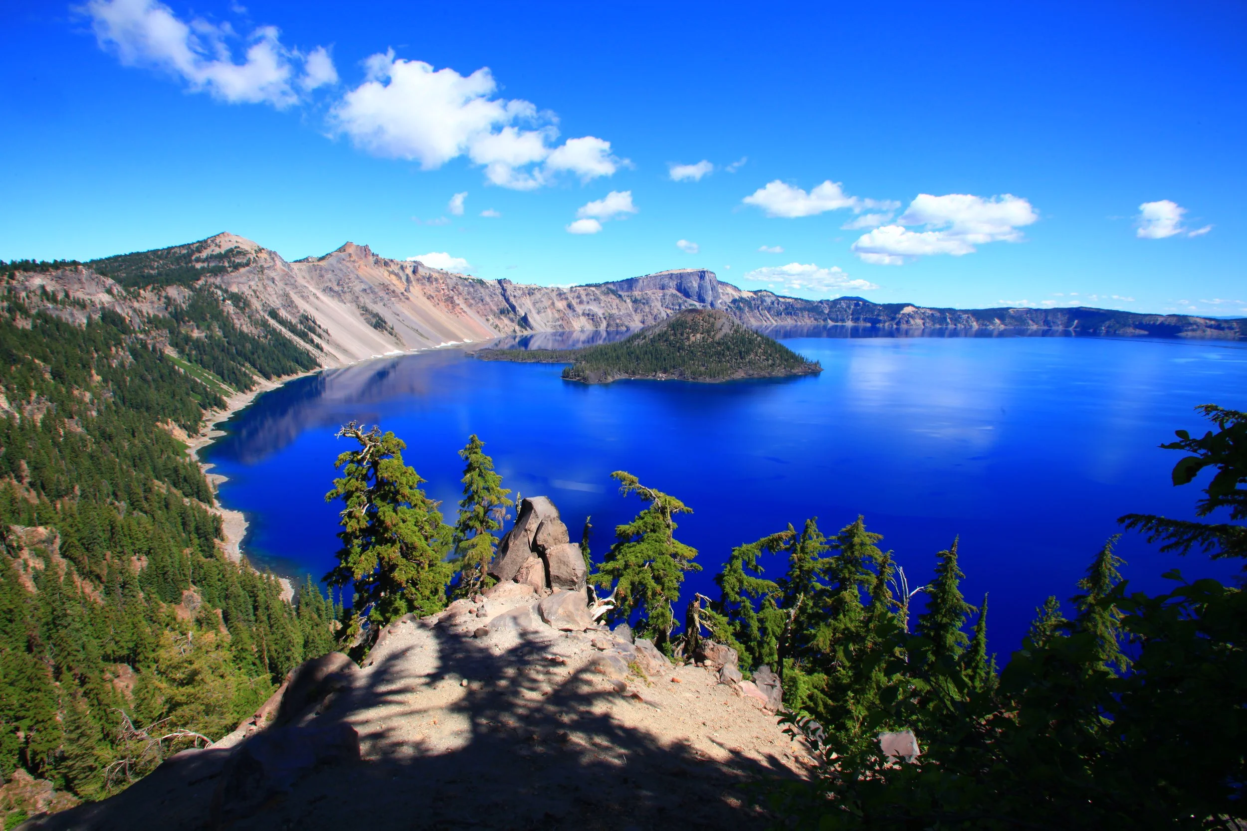 With a maximum depth of 1,949 feet, the great depth of the lake helps to impart the vibrant, deep blue color. The lake has no inlets or tributaries, rain and snowfall replenish water levels each year, resulting in some of the purest waters in the world.
